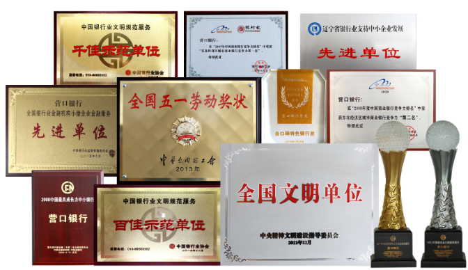 對(duì)中小微企業(yè)的持久專注,對(duì)經(jīng)濟(jì)發(fā)展的有力支持,以及對(duì)社會(huì)事業(yè)的積極推動(dòng),營(yíng)口銀行收獲了來(lái)自社會(huì)各界的高度認(rèn)可,并相繼被中央文明委評(píng)為全國(guó)綜合性最高集體榮譽(yù)稱號(hào)——“全國(guó)文明單位”,被中華全國(guó)總工會(huì)授予企事業(yè)單位的最高榮譽(yù)——“全國(guó)五一勞動(dòng)獎(jiǎng)狀”;被中國(guó)銀監(jiān)會(huì)評(píng)為“全國(guó)銀行業(yè)金融機(jī)構(gòu)小微企業(yè)金融服務(wù)先進(jìn)單位”、“全國(guó)銀行業(yè)金融機(jī)構(gòu)小企業(yè)貸款工作先進(jìn)單位”“遼寧省銀行業(yè)小微企業(yè)金融服務(wù)先進(jìn)單位”等一系列榮譽(yù)稱號(hào);并收獲了“中國(guó)最具成長(zhǎng)力中小銀行”、“ 中國(guó)最具特色中小銀行”、“中國(guó)城市金口碑服務(wù)銀行”等多項(xiàng)美譽(yù)。